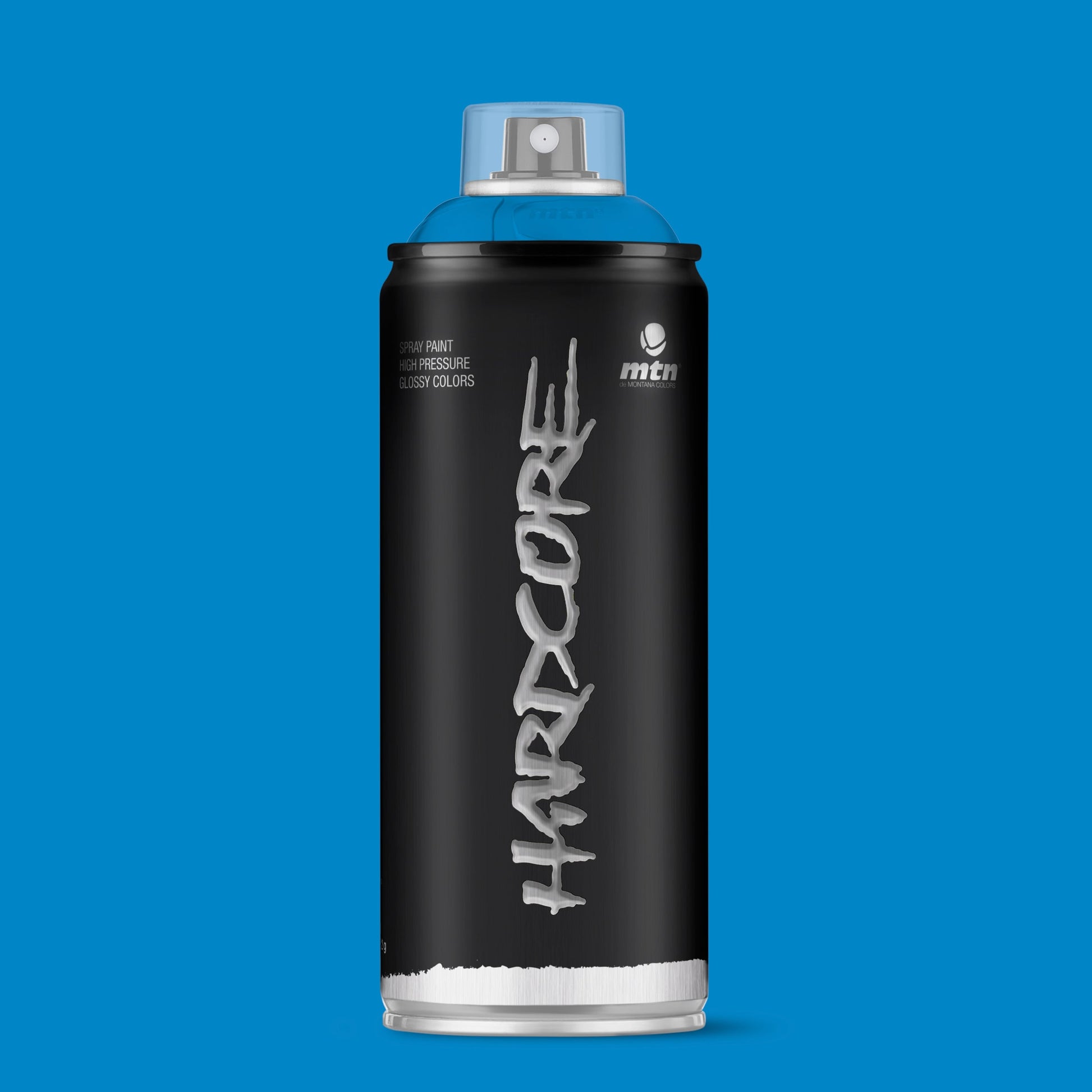 MTN Hardcore Spray Paint - RV217 - Avatar Blue is a high pressure and perfect covering spray paint. The Hardcore range of 142 shades encompasses a wide spectrum of intense colours whose gloss finish makes them more striking. The paint dries quickly and after 24-48 hours, depending on the number of coats applied and the atmospheric conditions, the film hardens completely, thus increasing its resistance. Montana Colors Hardcore RV217 - Avatar Blue is a bright middle to slightly light blue hue.