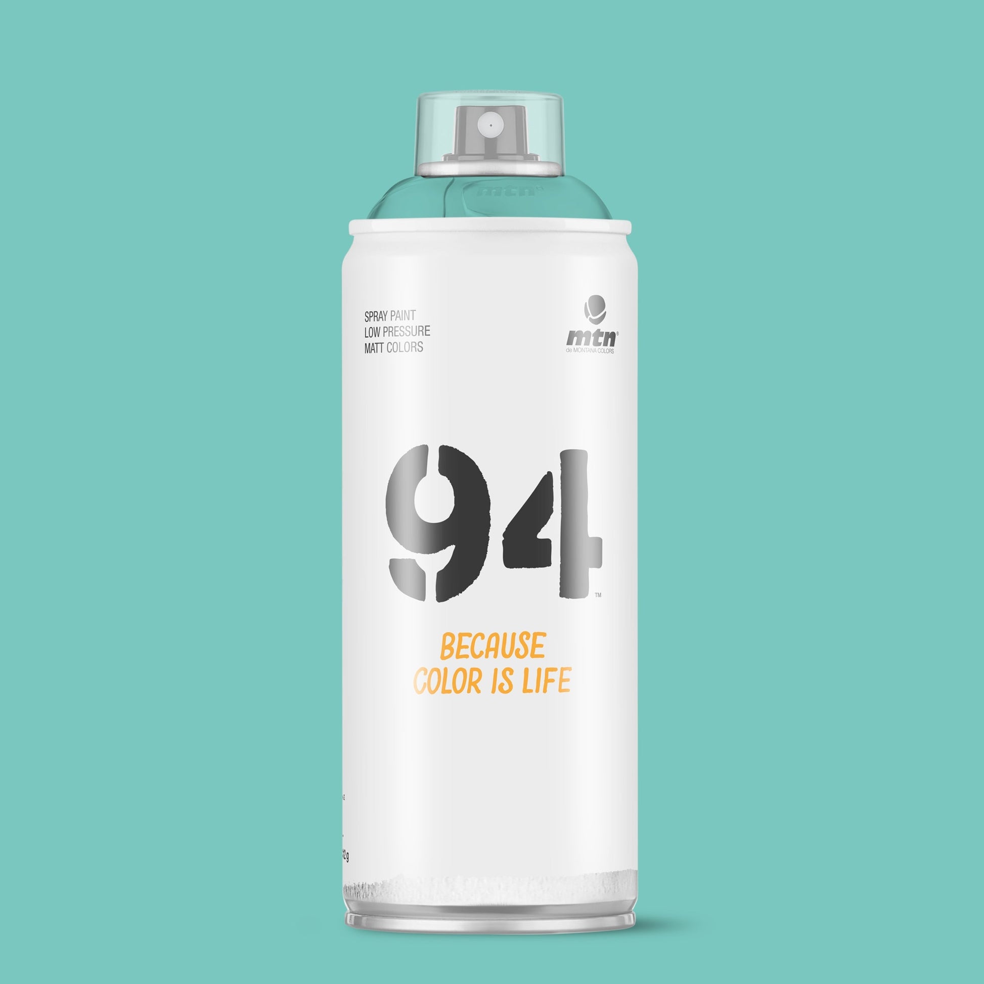 MTN 94 Spray Paint - RV144 - Bali Green is a low pressure can with a smooth valve system. These versatile spray cans will provide artists, craftsmen and your everyday DIY'er precise control to achieve your finish and effects with ease. Now with 217 high opacity colours in its range you will never be short of producing your best work. Montana Colors MTN 94 RV144 - Bali Green is an opaque full middle to light greenish blue hue.