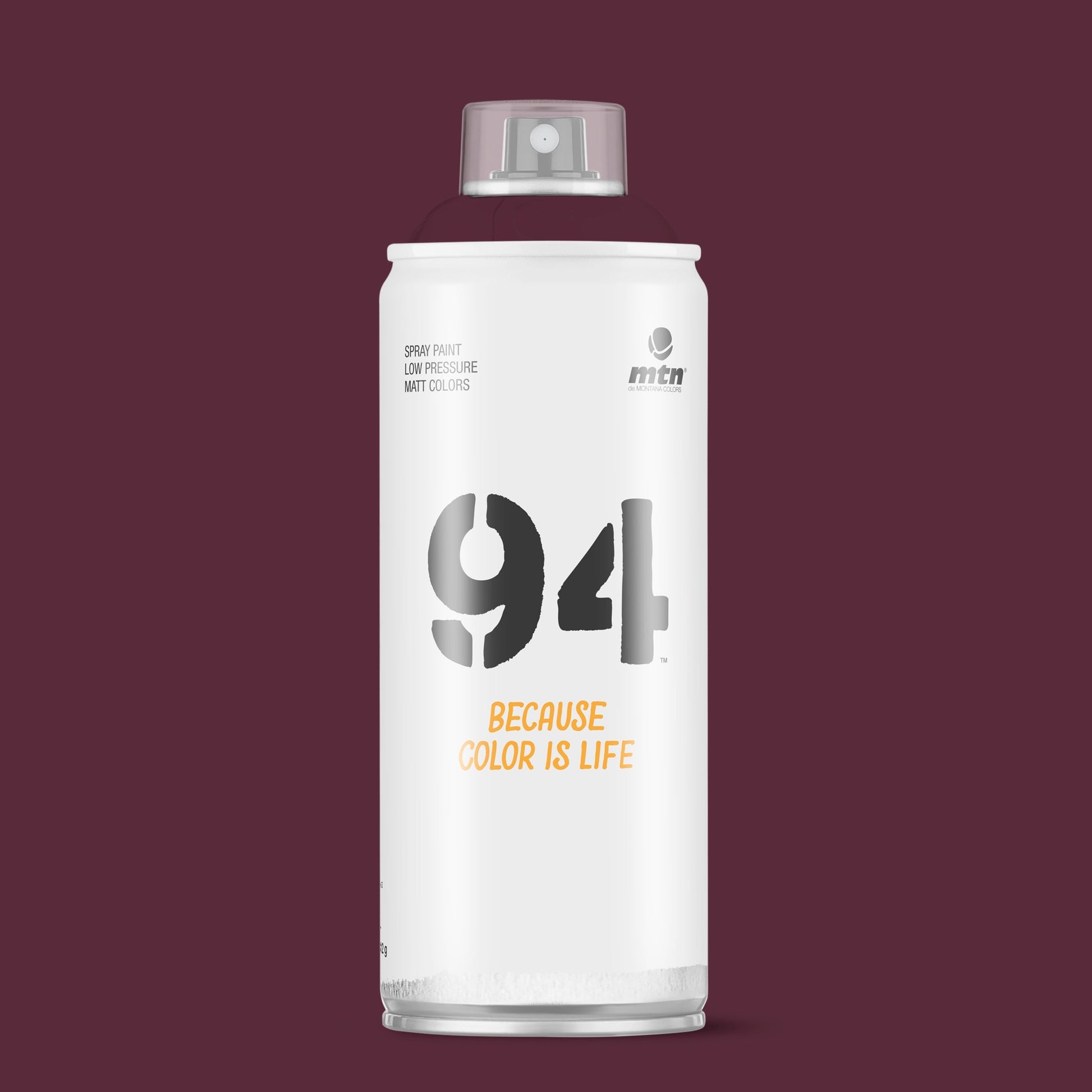 MTN 94 Spray Paint - RV90 - Bitacora Red is a low pressure can with a smooth valve system. These versatile spray cans will provide artists, craftsmen and your everyday DIY'er precise control to achieve your finish and effects with ease. Now with 217 high opacity colours in its range you will never be short of producing your best work. Montana Colors MTN 94 RV90 - Bitacora Red is an opaque full dark purplish red hue.