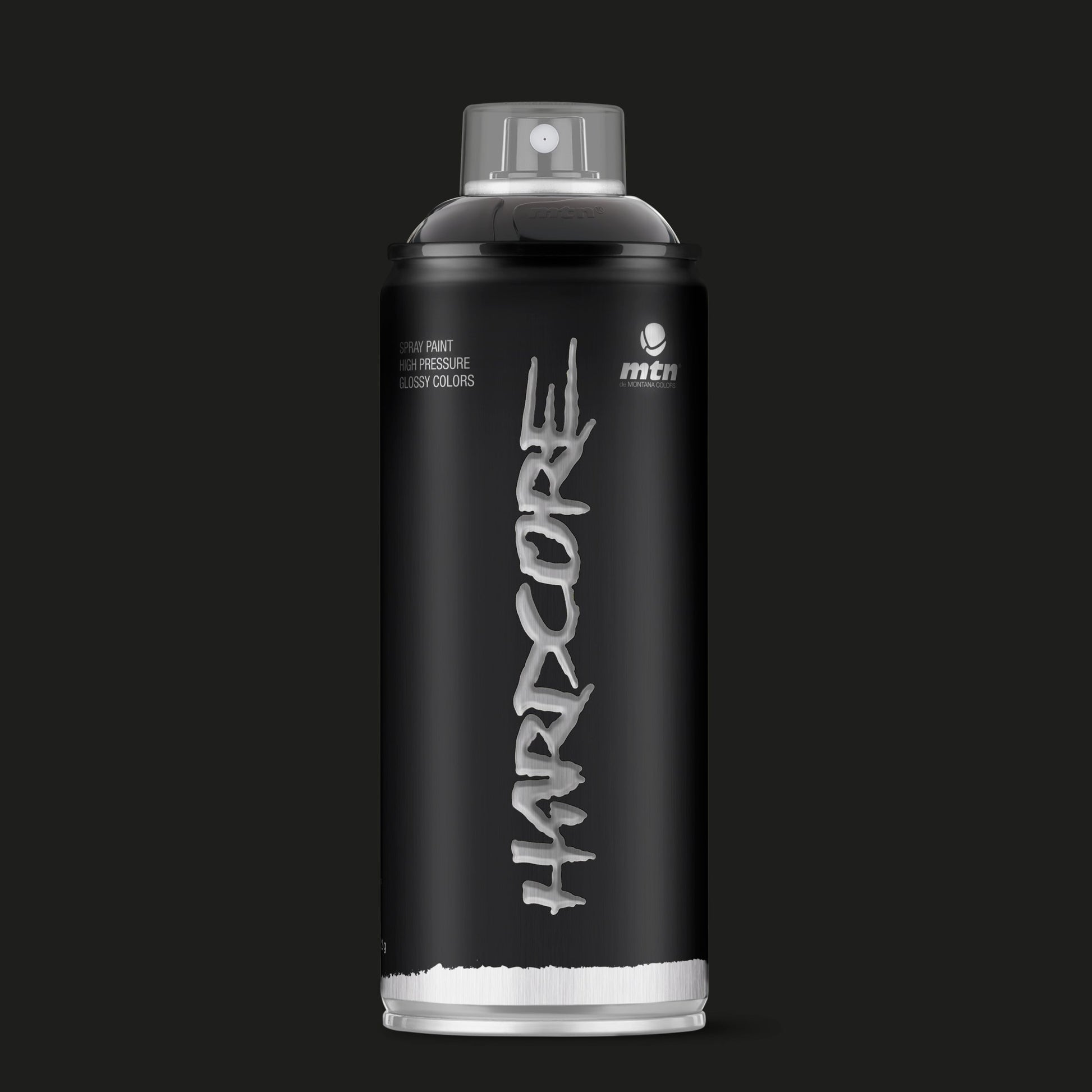 MTN Hardcore Spray Paint - RV9011 - Black is a high pressure and perfect covering spray paint. The Hardcore range of 142 shades encompasses a wide spectrum of intense colours whose gloss finish makes them more striking. The paint dries quickly and after 24-48 hours, depending on the number of coats applied and the atmospheric conditions, the film hardens completely, thus increasing its resistance. Montana Colors Hardcore RV9011 - Black is a full dark black hue.