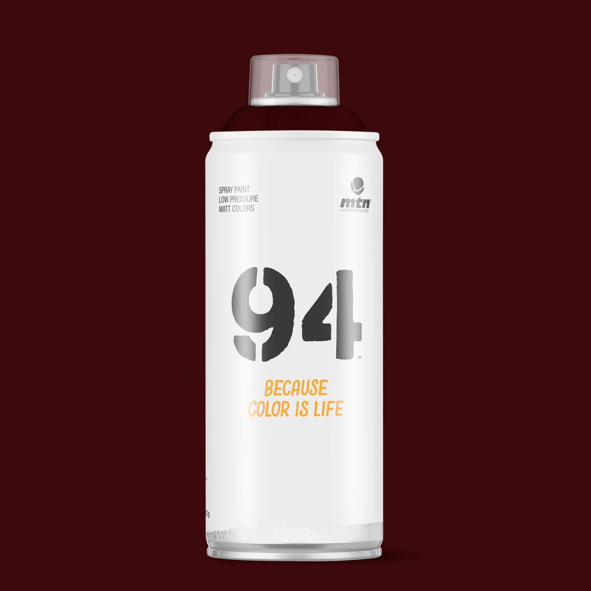 MTN 94 Spray Paint - RV3007 - Cherokee Red is a low pressure can with a smooth valve system. These versatile spray cans will provide artists, craftsmen and your everyday DIY'er precise control to achieve your finish and effects with ease. Now with 217 high opacity colours in its range you will never be short of producing your best work. Montana Colors MTN 94 RV3007 - Cherokee Red is an opaque full very dark almost brown red hue.