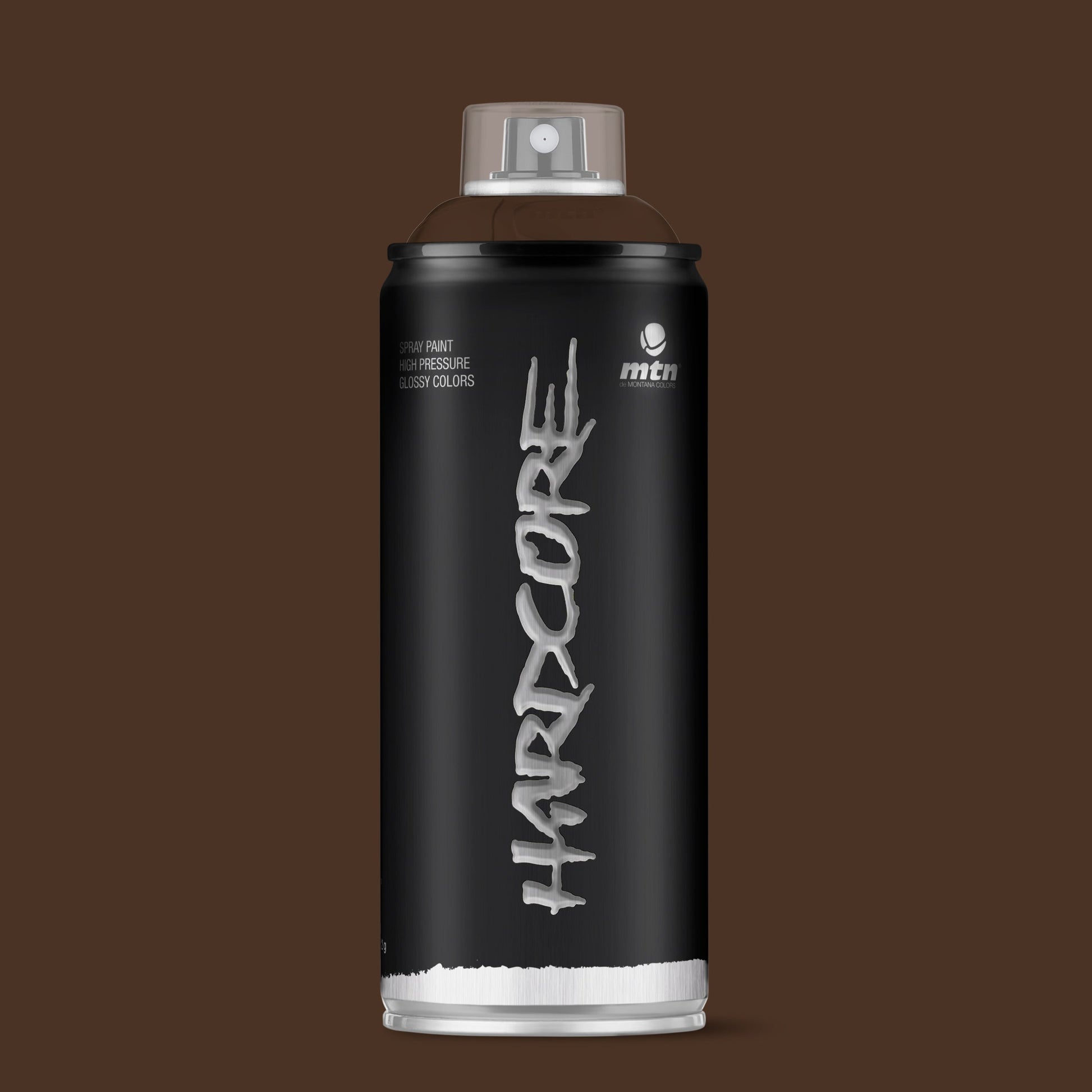 MTN Hardcore Spray Paint - RV35 - Chocolate Brown is a high pressure and perfect covering spray paint. The Hardcore range of 142 shades encompasses a wide spectrum of intense colours whose gloss finish makes them more striking. The paint dries quickly and after 24-48 hours, depending on the number of coats applied and the atmospheric conditions, the film hardens completely, thus increasing its resistance. Montana Colors Hardcore RV35 - Chocolate Brown is a full dark brown hue.