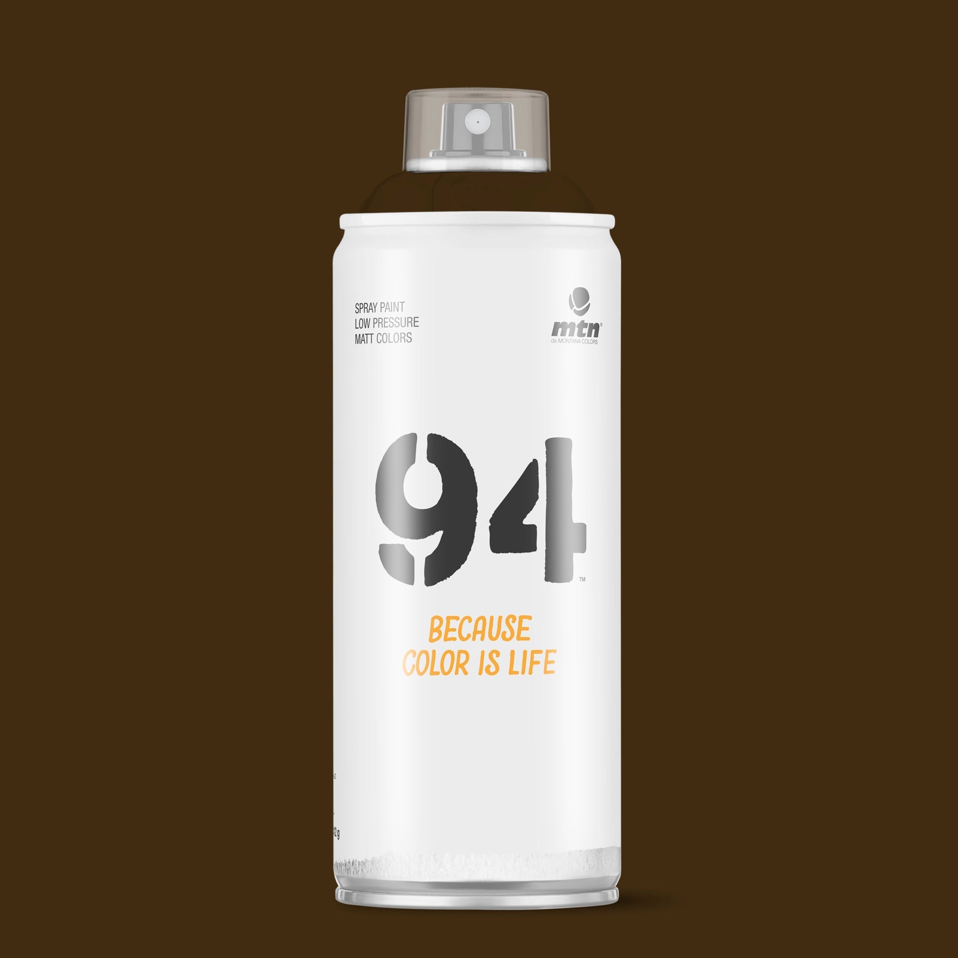 MTN 94 Spray Paint - RV141 - Gondola Brown is a low pressure can with a smooth valve system. These versatile spray cans will provide artists, craftsmen and your everyday DIY'er precise control to achieve your finish and effects with ease. Now with 217 high opacity colours in its range you will never be short of producing your best work. Montana Colors MTN 94 RV141 - Gondola Brown is an opaque full dark green tinted brown hue.