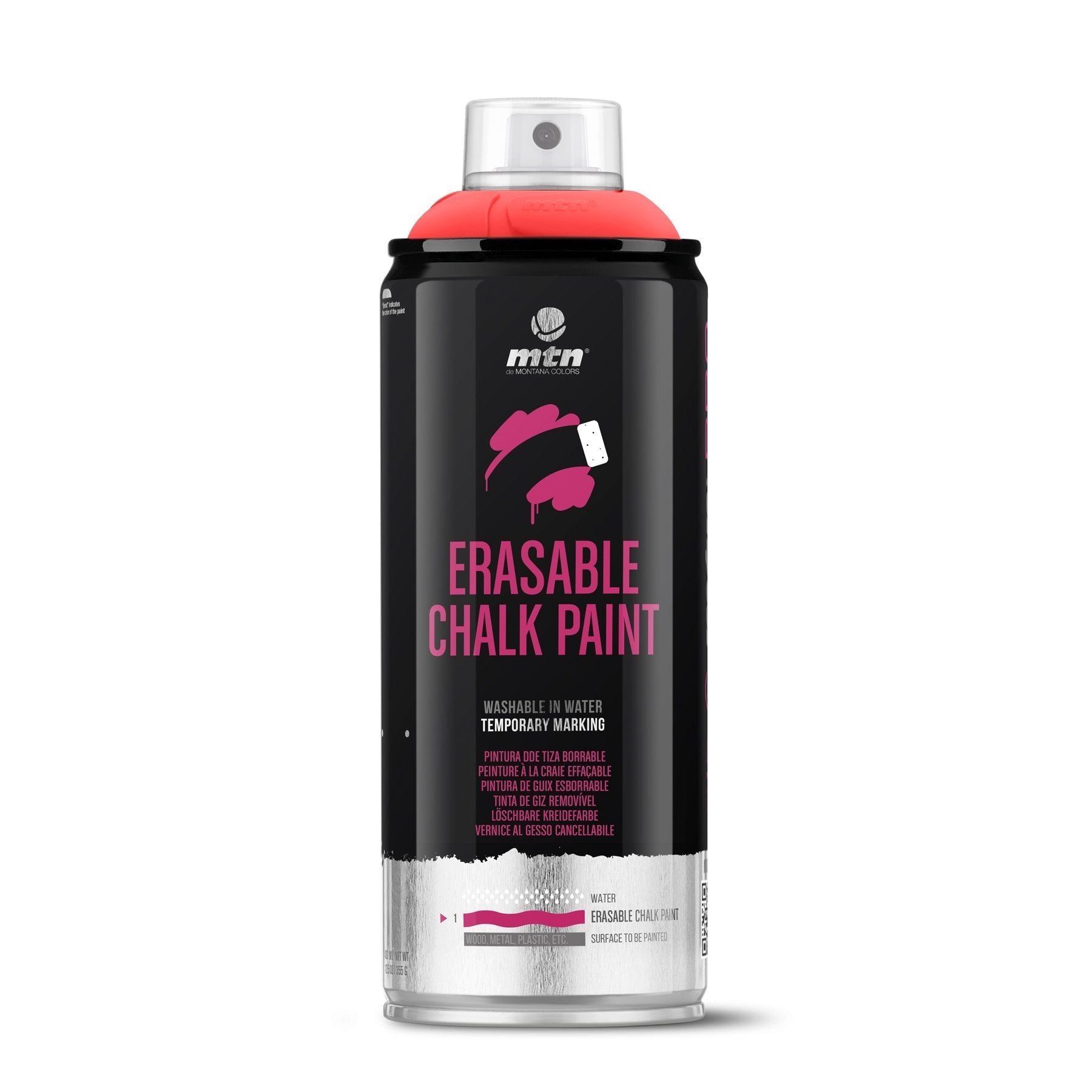 MTN PRO Erasable Chalk Paint is a fast drying water based paint with high opacity and matte finish. Developed for temporary markings on non-porous surfaces such as construction, sporting events, film decoration, children's games, temporary decorations, and so on. Perfect for situations that require spray paint that can be easily removed later with pressurized water.