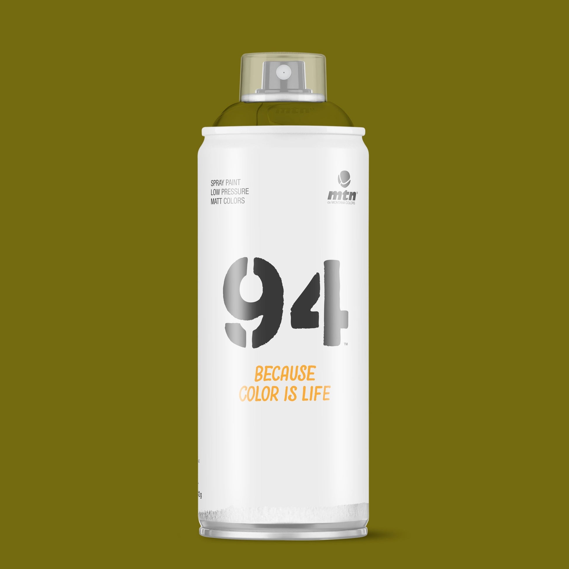 MTN 94 Spray Paint - RV112 - Mission Green is a low pressure can with a smooth valve system. These versatile spray cans will provide artists, craftsmen and your everyday DIY'er precise control to achieve your finish and effects with ease. Now with 217 high opacity colours in its range you will never be short of producing your best work. Montana Colors MTN 94 RV112 - Mission Green is an opaque full middle army yellowish green hue.