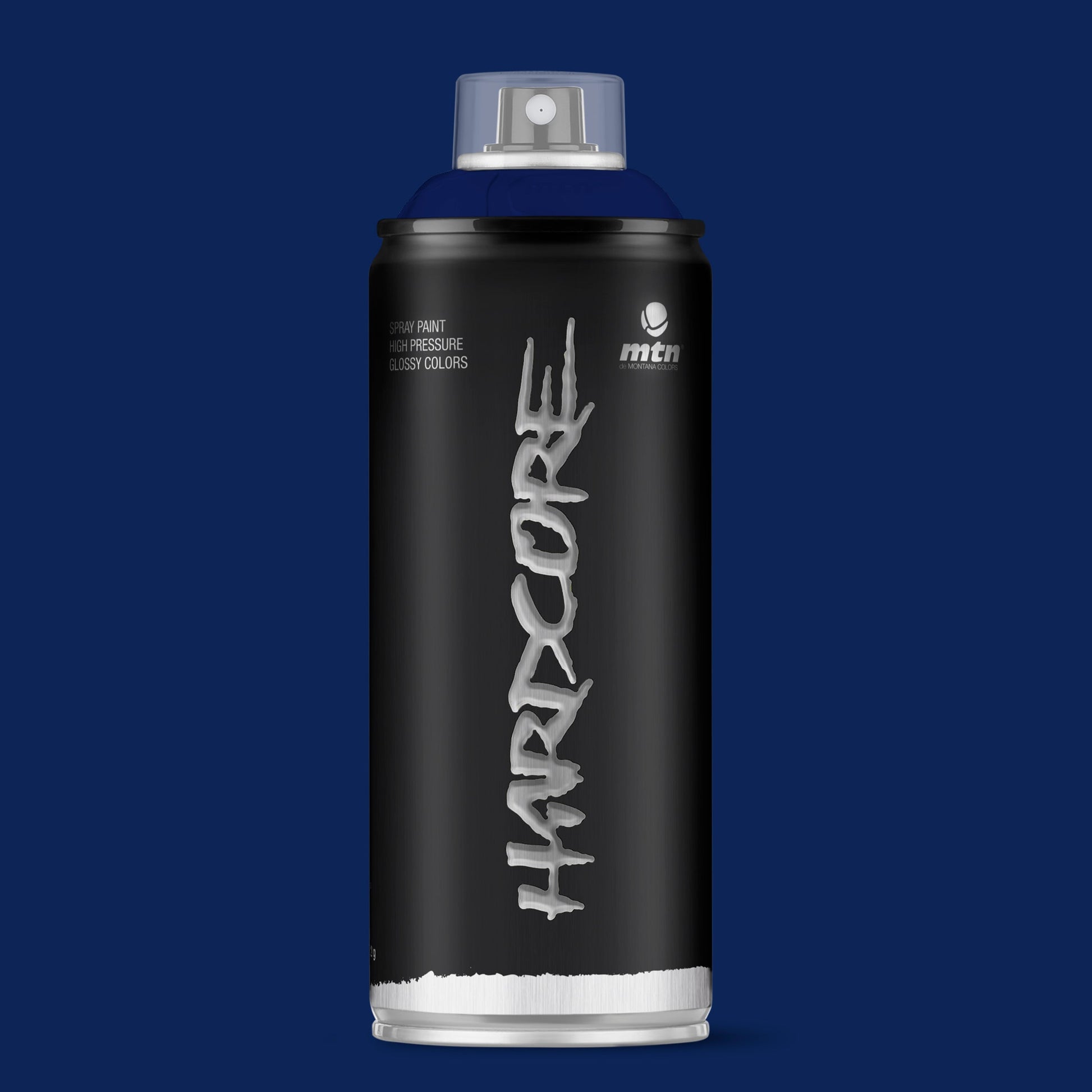 MTN Hardcore Spray Paint 400ml Universe Blue RV-354 is a high pressure and perfect covering spray paint. The Hardcore range of 142 shades encompasses a wide spectrum of intense colours whose gloss finish makes them more striking. The paint dries quickly and after 24-48 hours, depending on the number of coats applied and the atmospheric conditions, the film hardens completely, thus increasing its resistance. Montana Colors Hardcore RV354 - Universe Blue is a deep/dark purplish-blue hue.