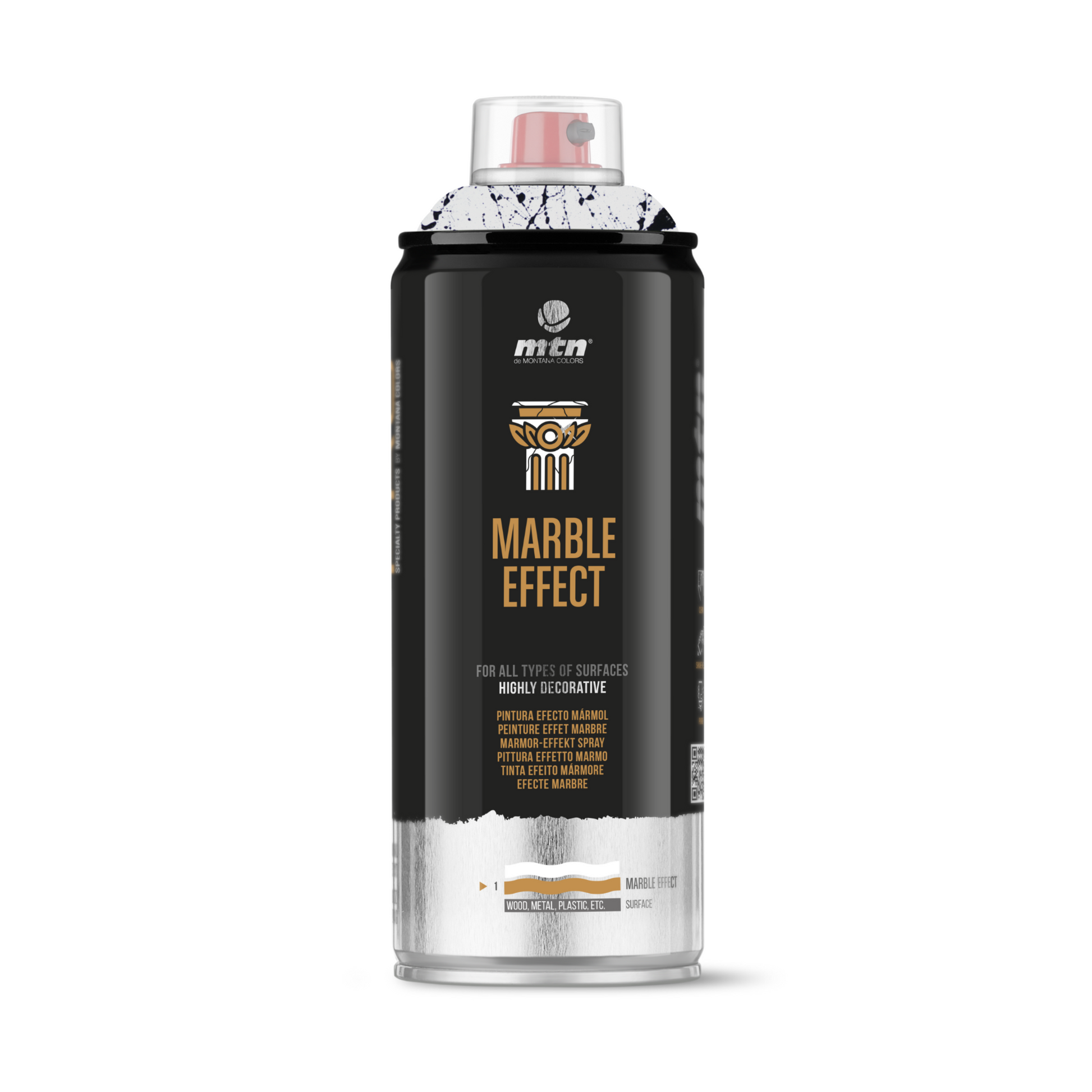 The MTN PRO Marble Effect Paint is a decorative spray paint, based on acrylic solvent, which lends a marble-like appearance to all kinds of surfaces. Thanks to its characteristics, it can be applied to metal, most plastics, stone, ceramics, glass and other pre-painted surfaces.