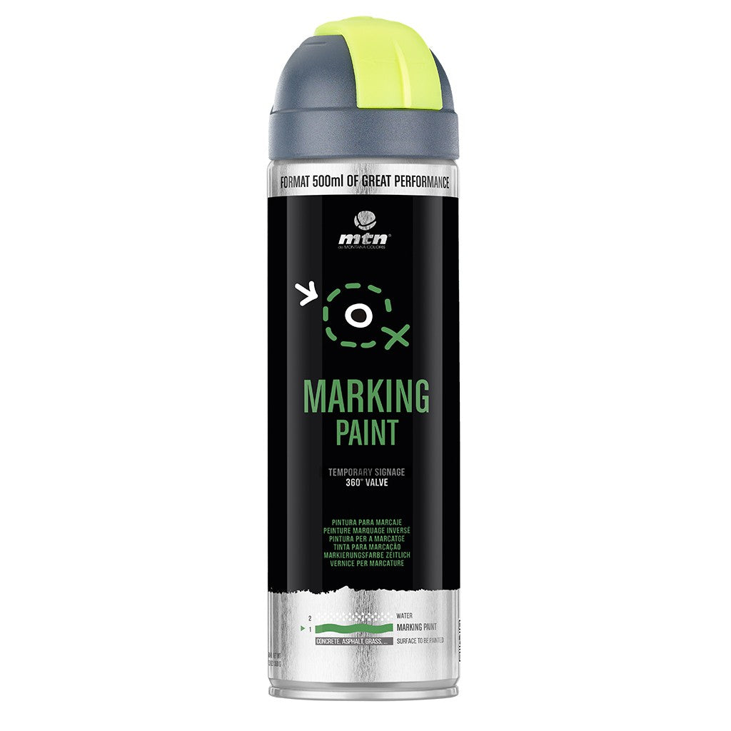 MTN Pro Marking Paint is a solvent acrylic paint whose revolutionary designs works with a 360° valve that allows the paint to be applied by placing the can in any position.