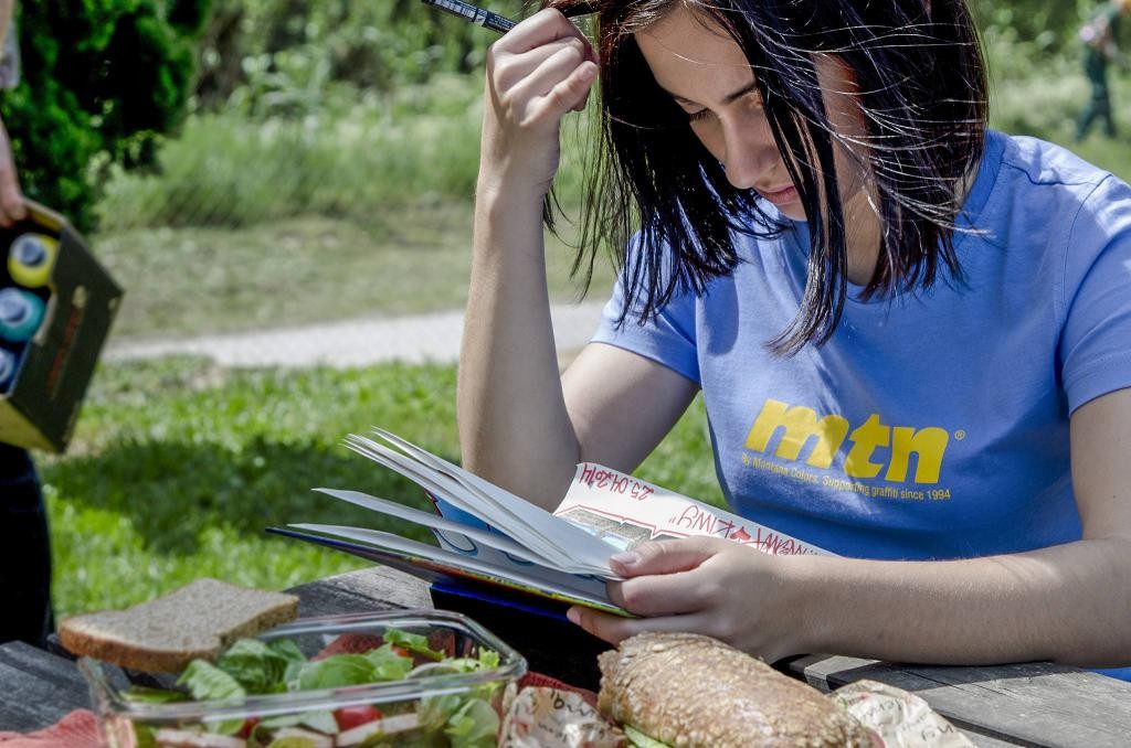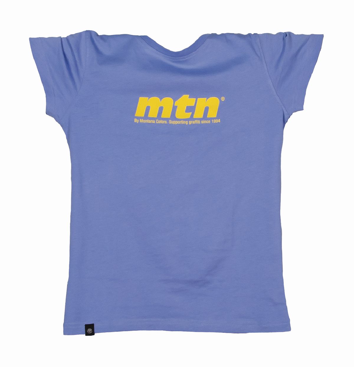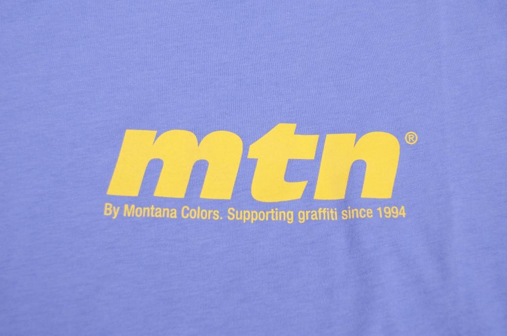 Light, comfortable and flexible. Waimea Blue RV-227 (MTN Hardcore) garment with a centered “MTN” graphic screen printed in Matte Ganges Yellow RV-11 (MTN Hardcore). Available only in L size.