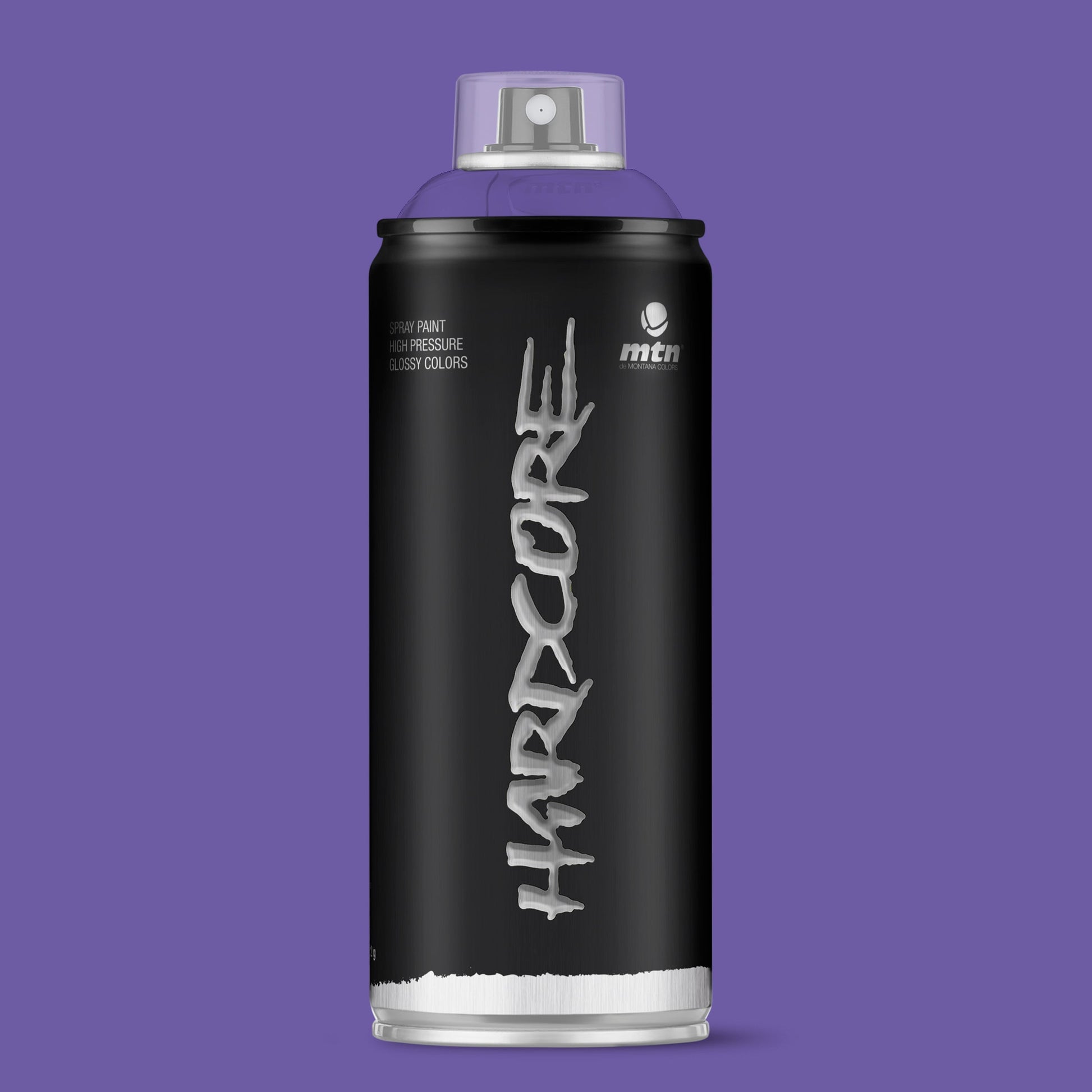 MTN Hardcore Spray Paint - RV215 - Prophet Violet is a high pressure and perfect covering spray paint. The Hardcore range of 142 shades encompasses a wide spectrum of intense colours whose gloss finish makes them more striking. The paint dries quickly and after 24-48 hours, depending on the number of coats applied and the atmospheric conditions, the film hardens completely, thus increasing its resistance. Montana Colors Hardcore RV215 - Prophet Violet gloss spray paint is a middle slightly desaturated purple hue.
