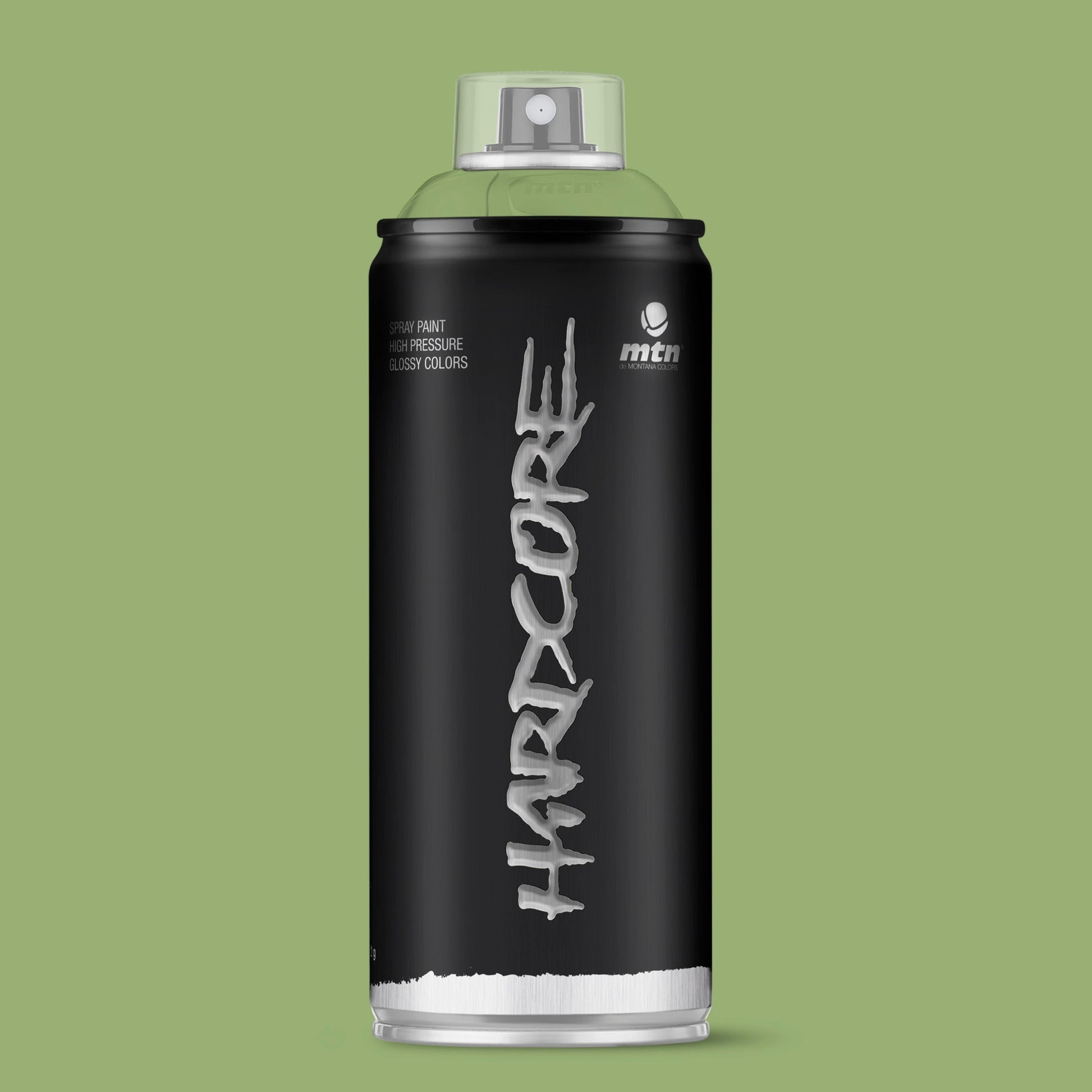 MTN Hardcore Spray Paint - RV250 - Rambo Green is a high pressure and perfect covering spray paint. The Hardcore range of 142 shades encompasses a wide spectrum of intense colours whose gloss finish makes them more striking. The paint dries quickly and after 24-48 hours, depending on the number of coats applied and the atmospheric conditions, the film hardens completely, thus increasing its resistance. Montana Colors Hardcore RV250 - Rambo Green is a middle desaturated green hue.