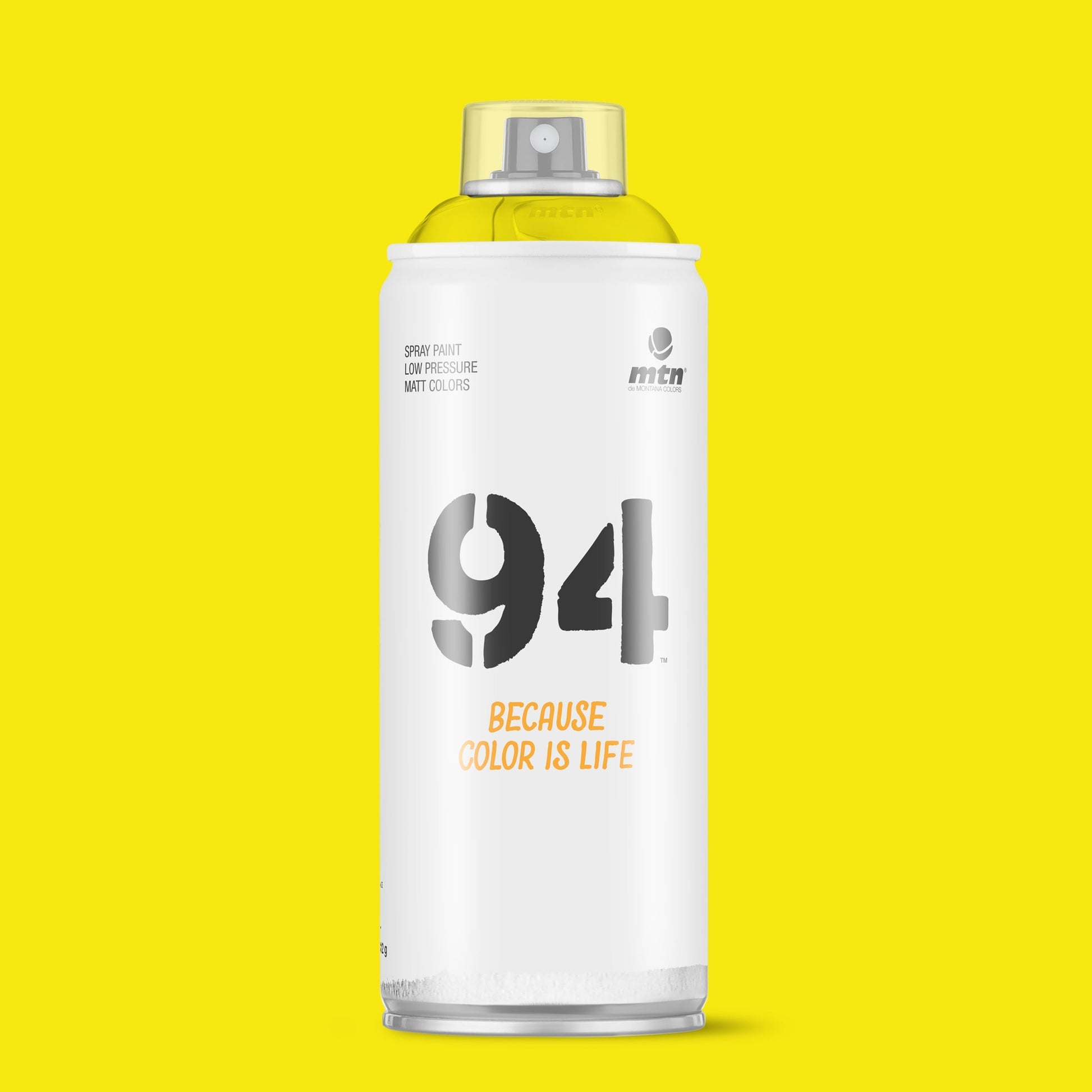 MTN 94 Spray Paint - RV267 - Sulfur Yellow is a low pressure can with a smooth valve system. These versatile spray cans will provide artists, craftsmen and your everyday DIY'er precise control to achieve your finish and effects with ease. Now with 217 high opacity colours in its range you will never be short of producing your best work. Montana Colors MTN 94 RV267 - Sulfur Yellow is an opaque full bright light greenish tinted yellow hue.