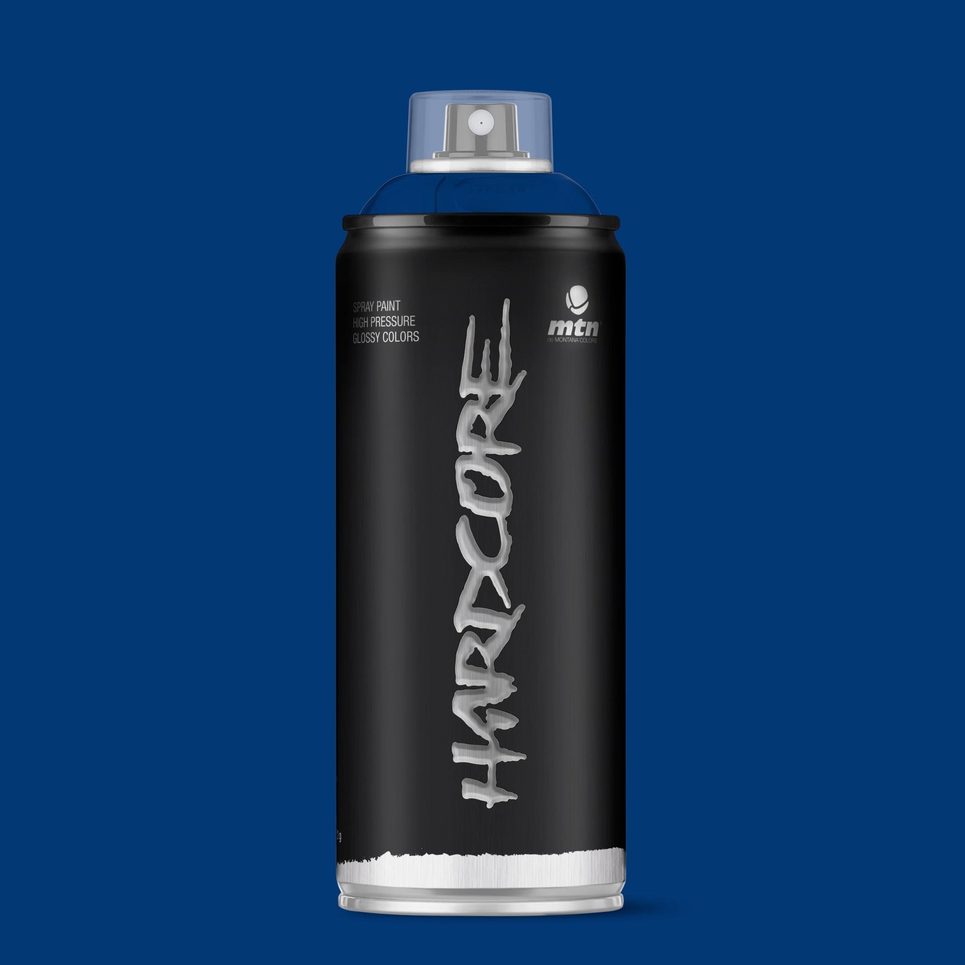 MTN Hardcore Spray Paint - RV5002 - Ultramarine Blue is a high pressure and perfect covering spray paint. The Hardcore range of 142 shades encompasses a wide spectrum of intense colours whose gloss finish makes them more striking. The paint dries quickly and after 24-48 hours, depending on the number of coats applied and the atmospheric conditions, the film hardens completely, thus increasing its resistance. Montana Colors Hardcore RV5002 - Ultramarine Blue is a very dark blue hue.