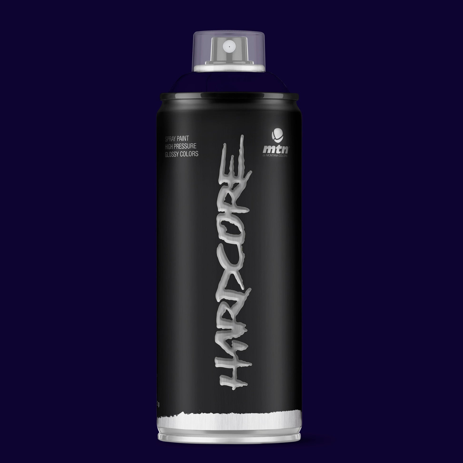 MTN Hardcore Spray Paint - RV27 - Vampire Violet is a high pressure and perfect covering spray paint. The Hardcore range of 142 shades encompasses a wide spectrum of intense colours whose gloss finish makes them more striking. The paint dries quickly and after 24-48 hours, depending on the number of coats applied and the atmospheric conditions, the film hardens completely, thus increasing its resistance. Montana Colors Hardcore RV27 - Vampire Violet gloss spray paint is a full ultra-dark violet hue.