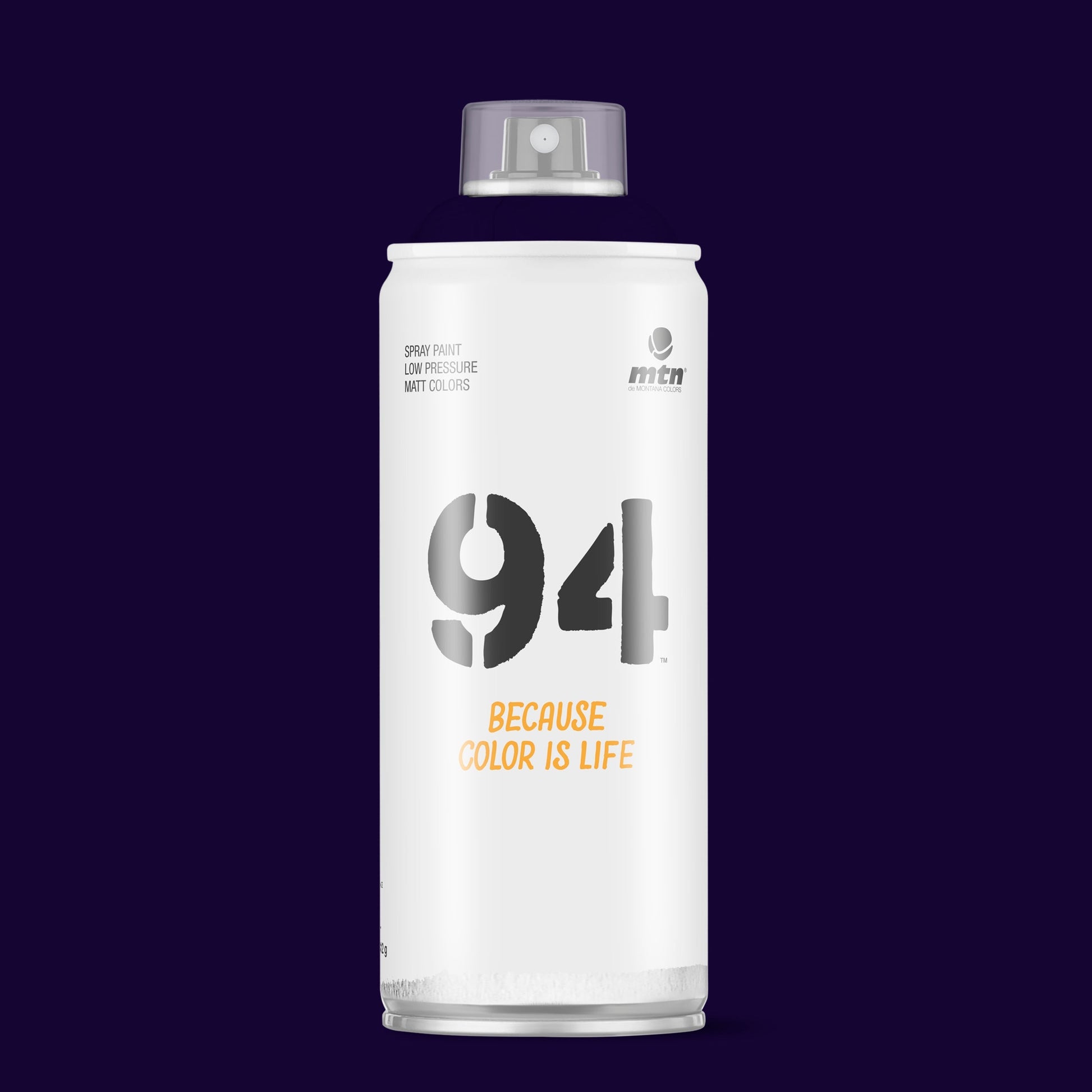 MTN 94 Spray Paint - RV27 - Vampire Violet is a low pressure can with a smooth valve system. These versatile spray cans will provide artists, craftsmen and your everyday DIY'er precise control to achieve your finish and effects with ease. Now with 217 high opacity colours in its range you will never be short of producing your best work. Montana Colors MTN 94 RV27 - Vampire Violet is an opaque full darker bluish violet hue.